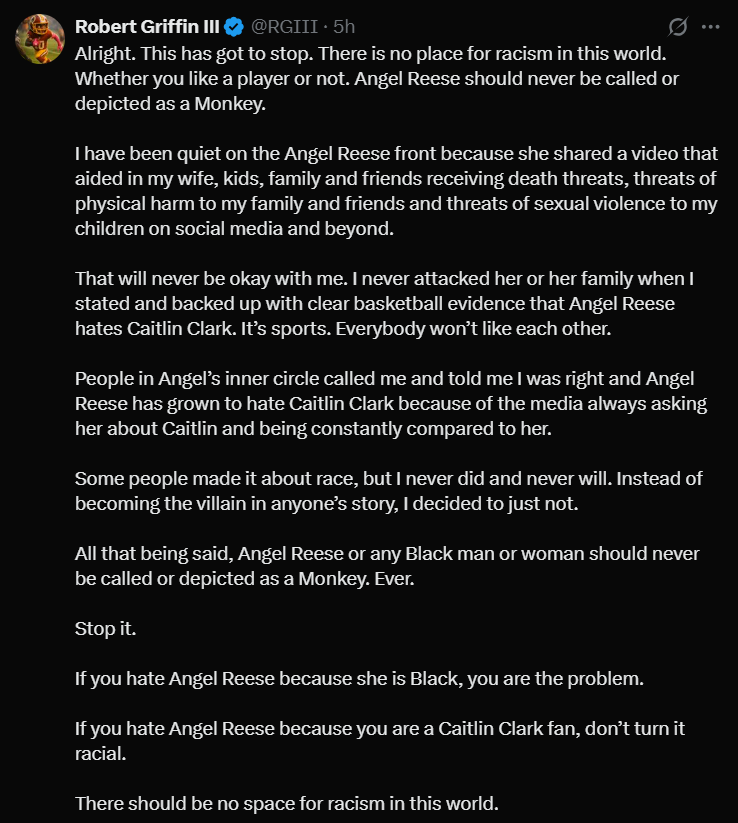 The blame here isn't on those who "misinterpret" his words. It's squarely on RGIII for crafting a narrative that, despite its stated intentions, ultimately exploited Angel Reese's situation for his own perceived gain, while simultaneously muddying the waters around crucial conversations about race and gender in sports.